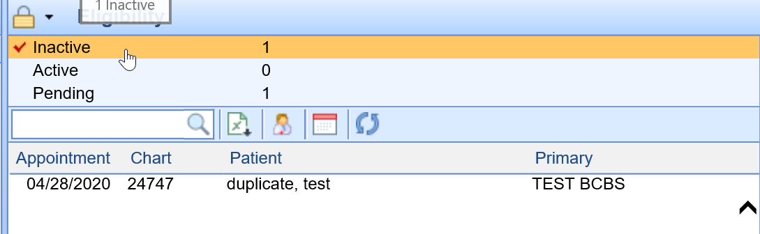 - Review all Needs Review and fix all Inactive coverages. The list will sort by appointment, chart, patient, location, and primary insurance. Insurances can show up inactive for a variety of reasons.