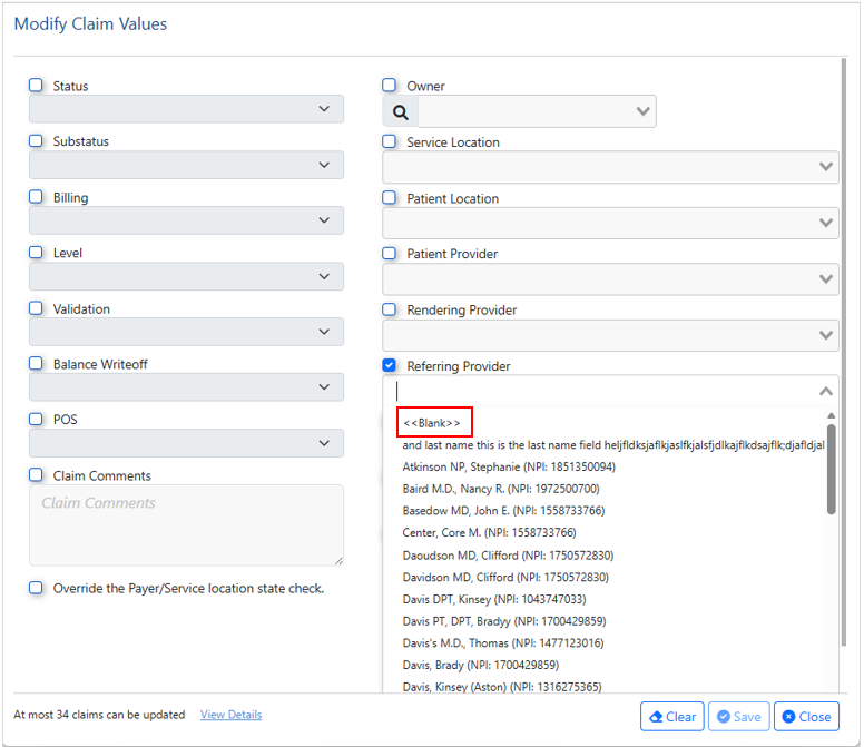 Claim Modify Not Allowing Blank Selection to Be Saved